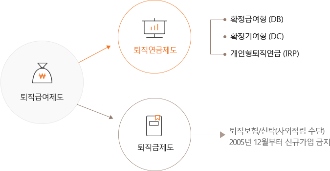 퇴직급여제도란 근로자의 안정적인 노후생활 보장을 위하여 「근로자퇴직급여 보장법」에 따라 사용자가 퇴직하는 근로자에게 퇴직급여를 지급할 목적으로 설정한 제도를 말합니다.