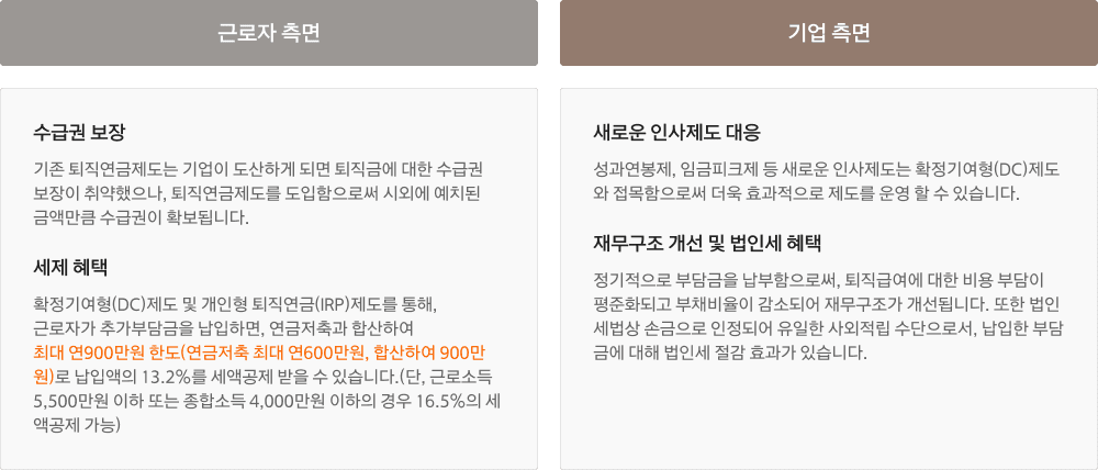 노사합의 로 선정된 퇴직연금사업자와 계약을 체결하고, 가입자 확정 및 부담금을 납부합니다. 퇴직연금사업자는 제도운영 사항에 대한 모니터링을 지원하고 연 1회 이상 임직원 설명회, 가입자 교육 등을 실시 합니다.